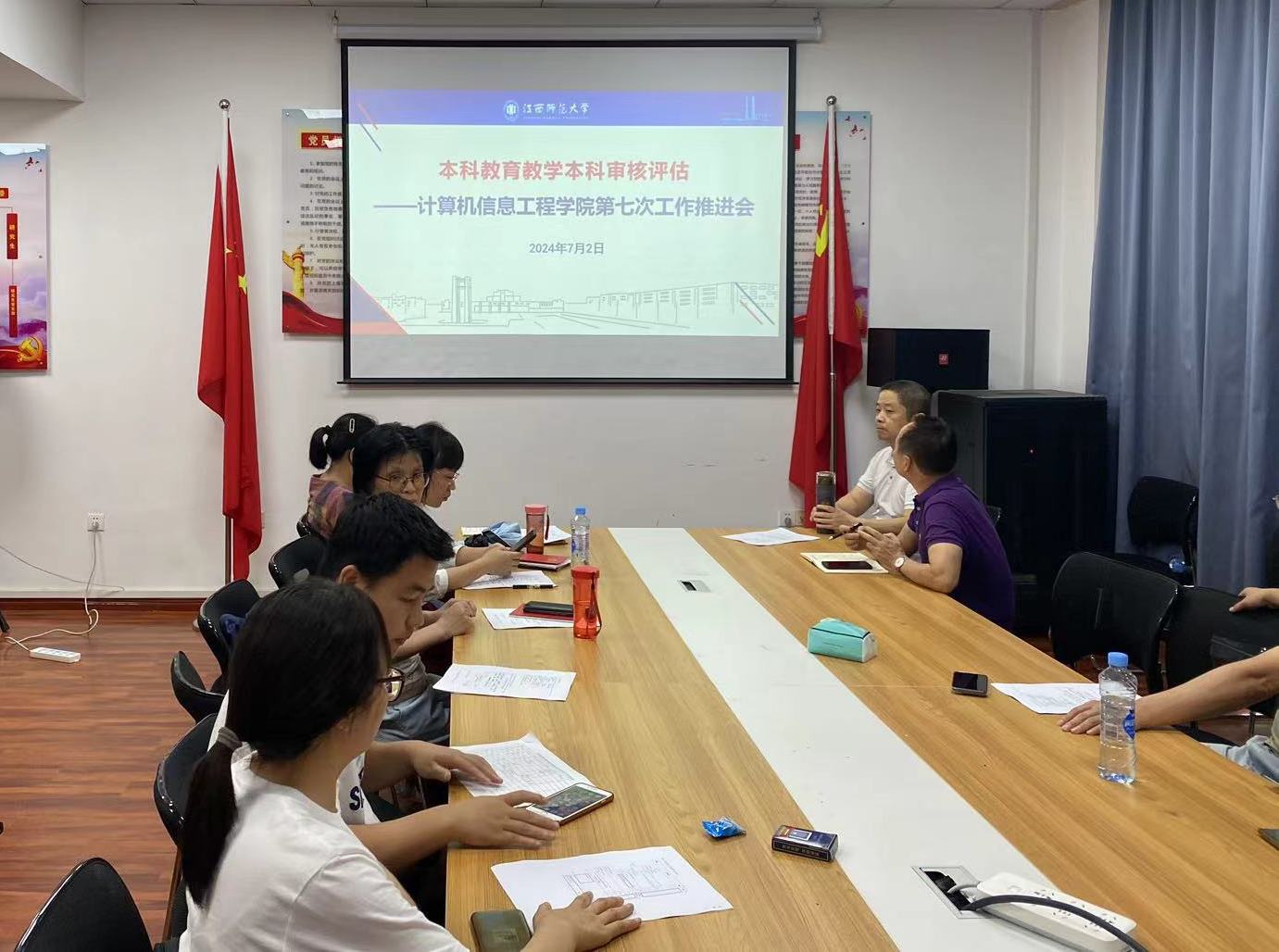 为进一步推动学院本科教育教学审核评估工作的深入开展,确保评估工作顺利进行,计算机信息工程学院于7月2日下午在学院党员活动室召开了本科教育教学审核评估第七次工作推进会。会议由学院副院长曾锦山主持,学院领导班子成员、各专业负责人以及学院评建办工作人员参加了会议。